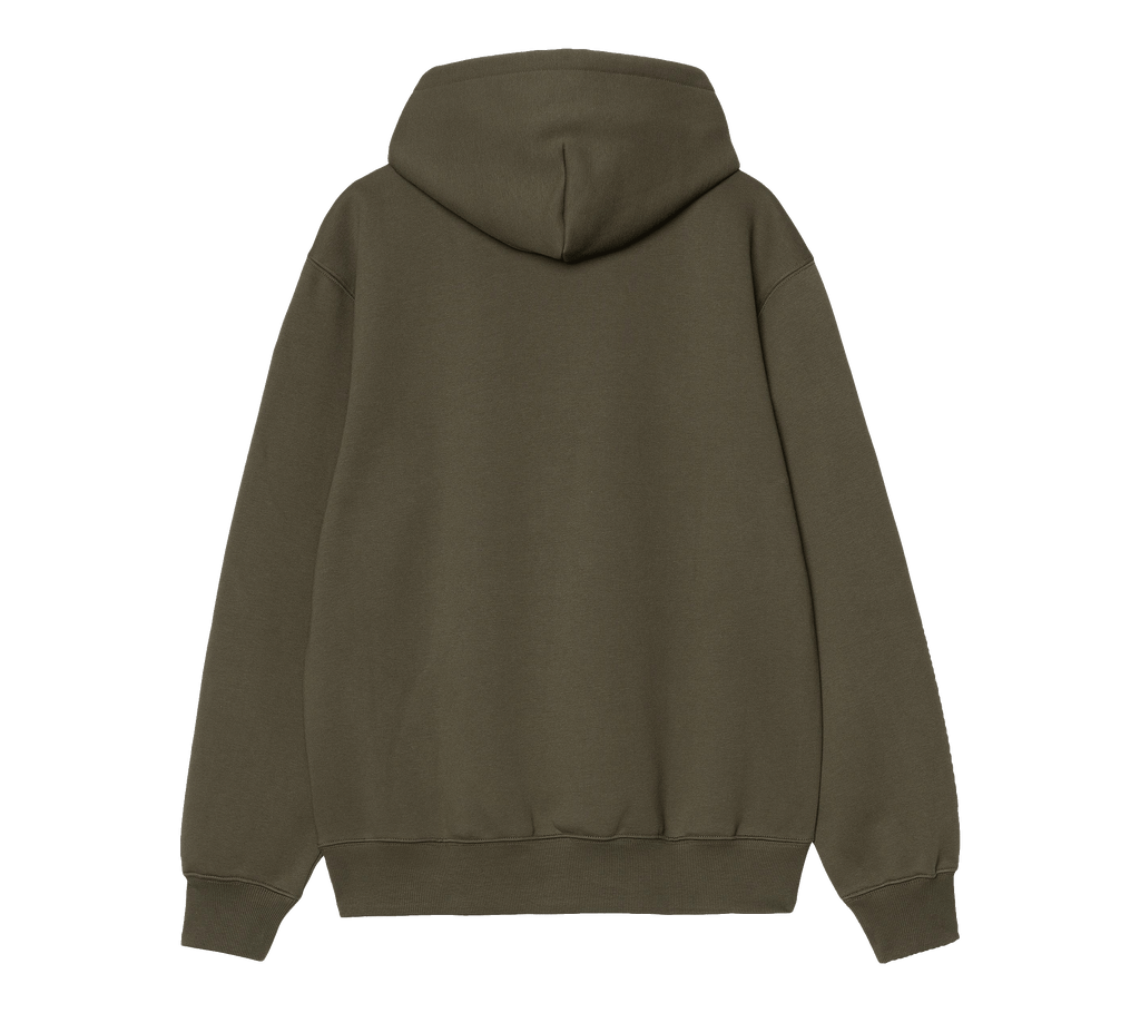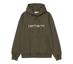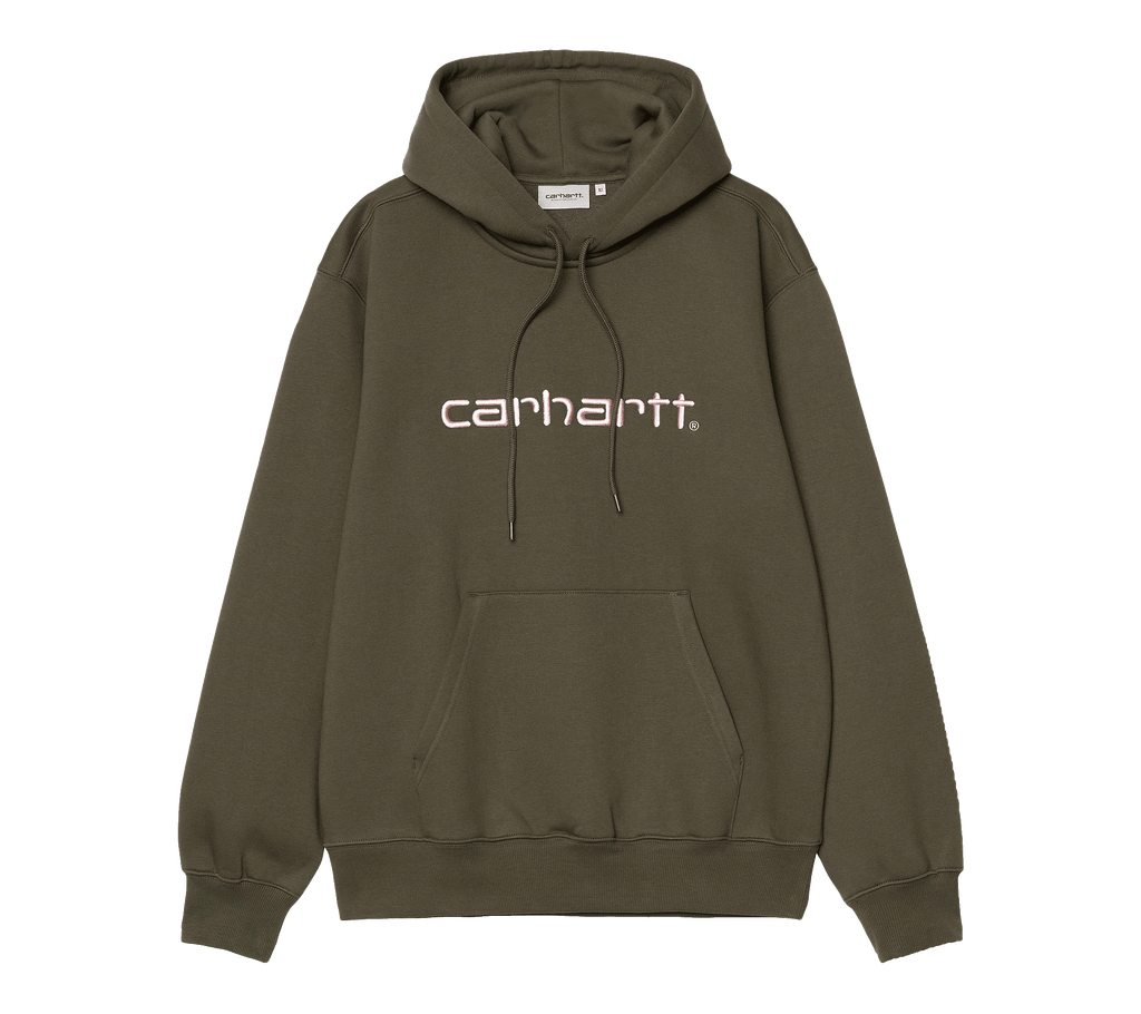 The Hooded Carhartt Sweatshirt is made in a loose fit from heavyweight, brushed polycotton jersey, meaning it has a soft fleece-like backing. It also features a kangaroo pocket, as well as a ribbed hem and cuffs. An embroidered Script Logo appears on the chest.